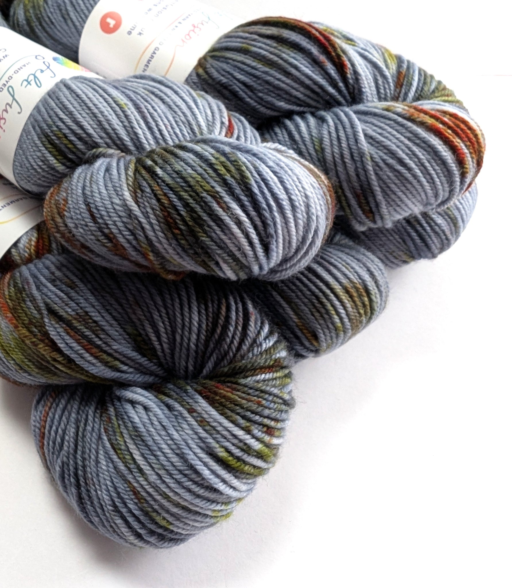Mordor is a deep grey colourway with speckles. This base is a soft base of 80% superwash merino/10% cashmere/10% nylon. It is a DK (double knit) weight yarn.