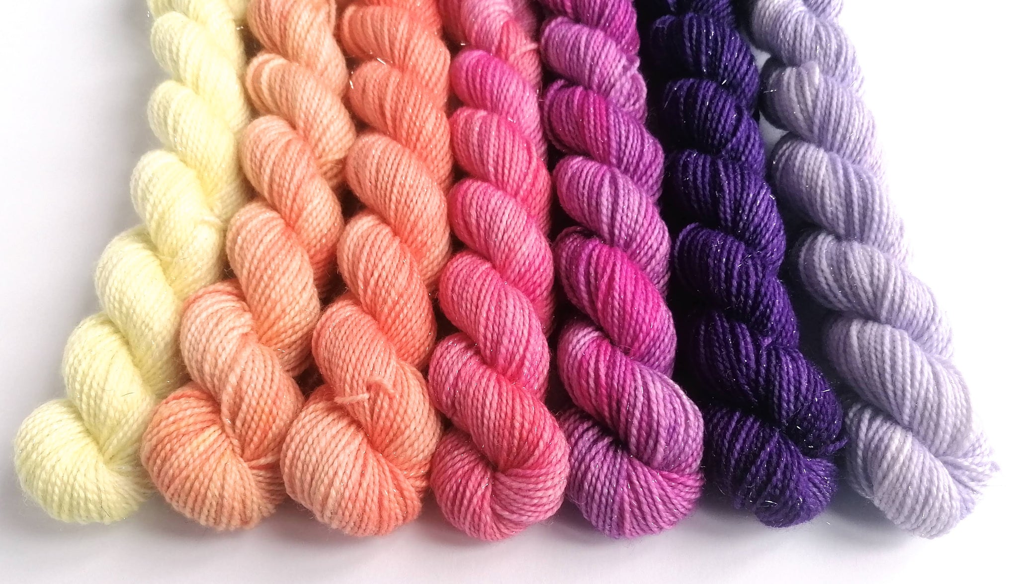 This listing is for a 7 x 20g (140g total) mini-skein set