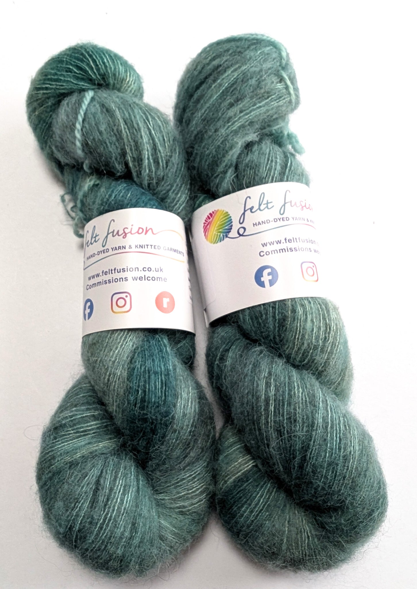 This base is 42% Baby Alpaca, 13% Fine Merino, 10% Yak, 35% Silk. It is a soft, fluffy lace weight yarn that is naturally grey.50g = approx 400m/437yds.