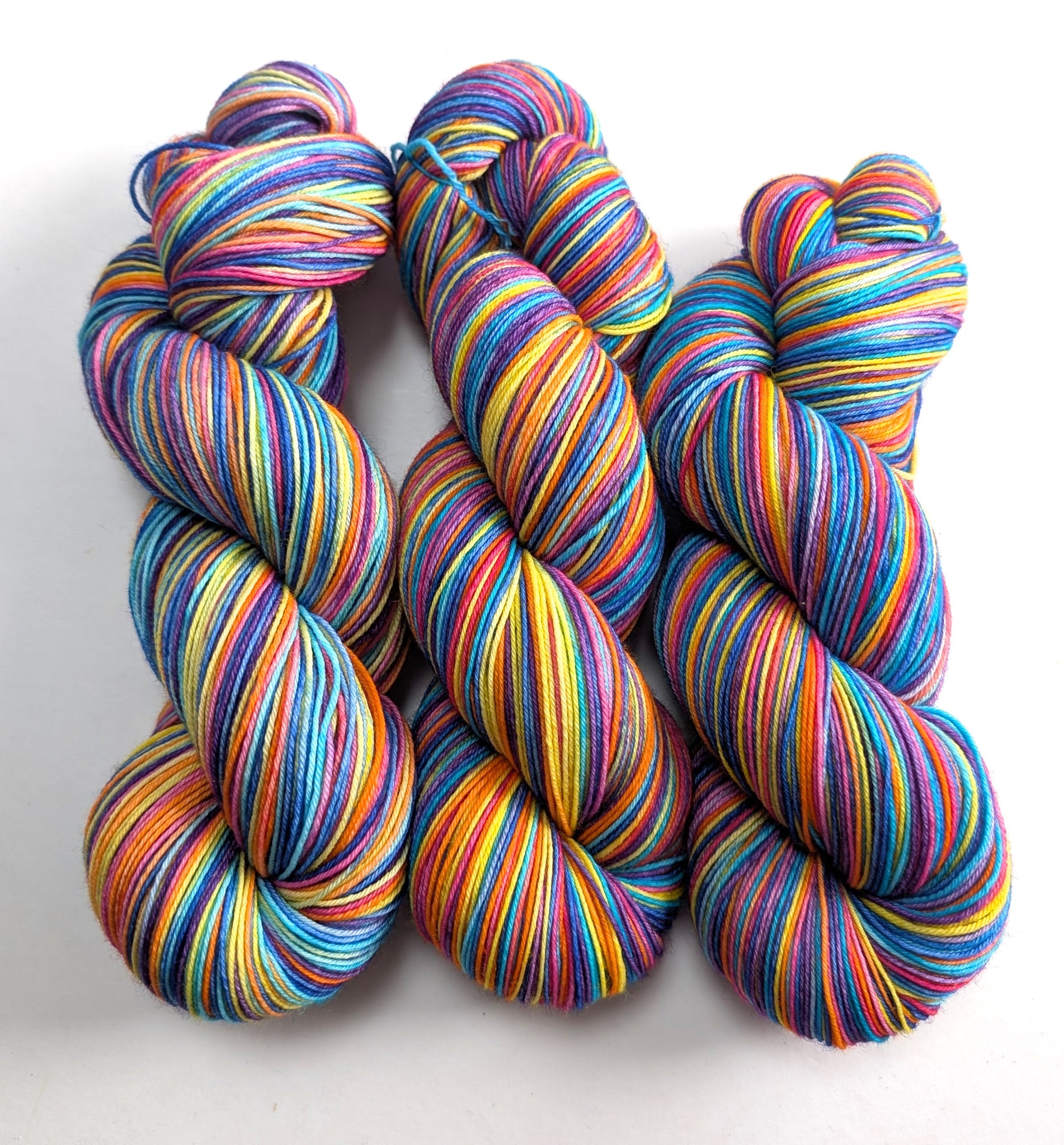 This base is a blend of 75% superwash merino/25% nylon. It is a sock/fingering/4-ply weight yarn.