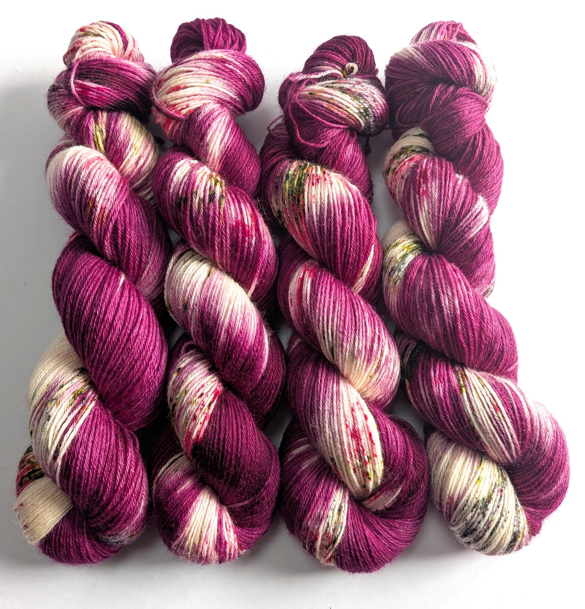 This base is a 80% superwash BFL (Blue Faced Leicester) wool and 20% nylon sock/fingering/4-ply yarn.