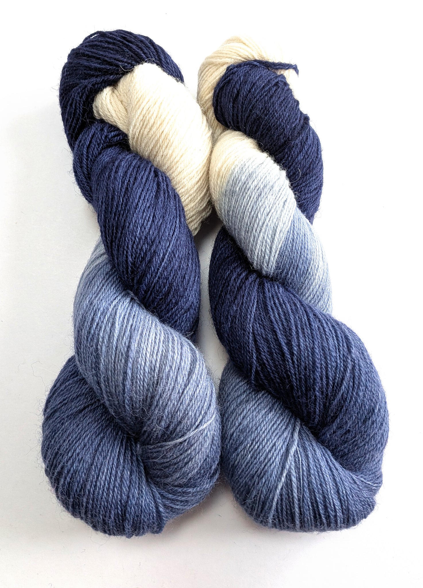 A non superwash British wool blend of 40% Exmoor Blueface/20% Devon Closewool/20% Blue Faced Leicester/20% nylon. This is a sock/4ply/fingering weight yarn.