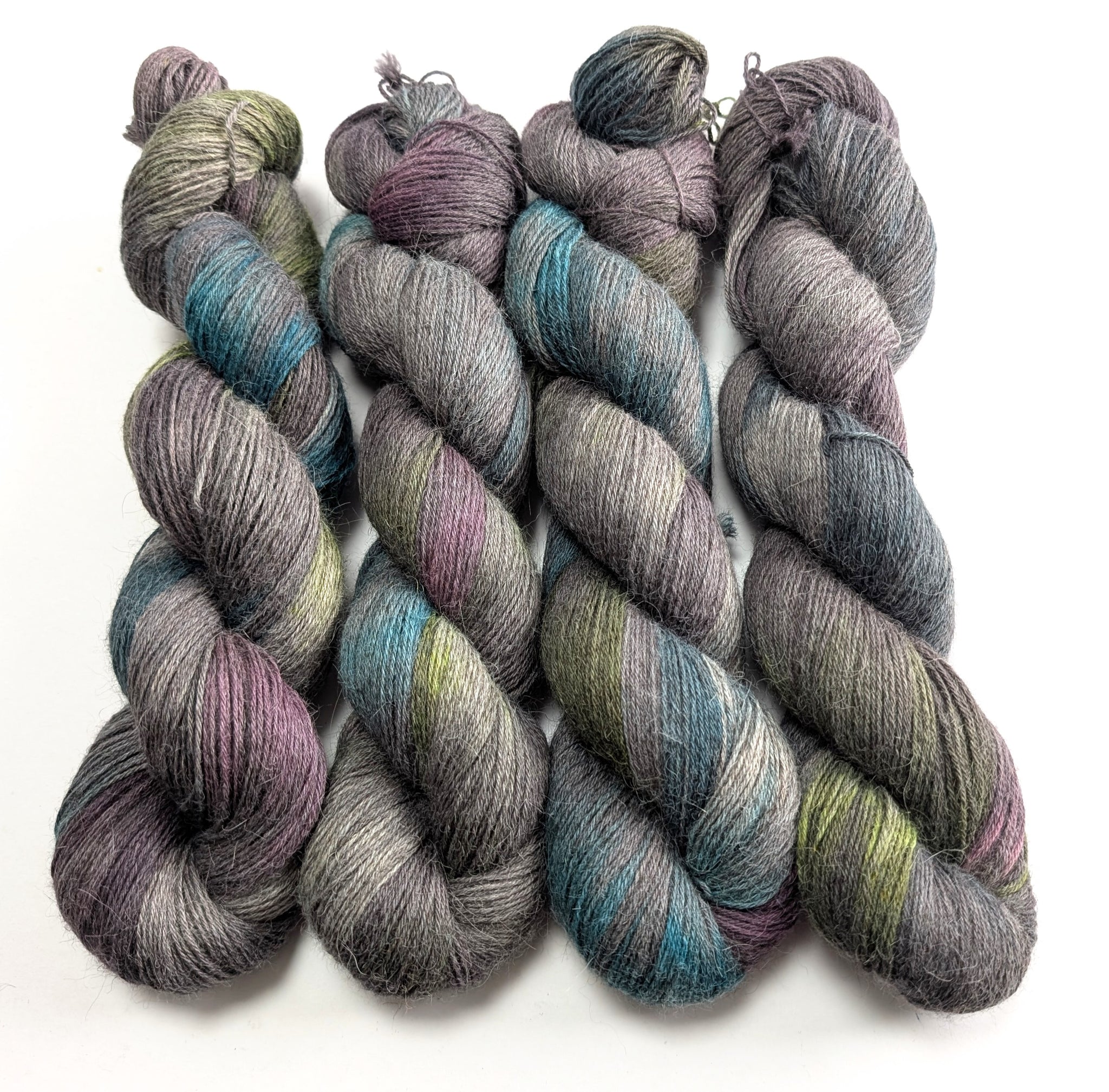 This yarn is a soft 100% baby llama (22.5 micron) 4ply/fingering weight yarn.This listing is for the grey base.
