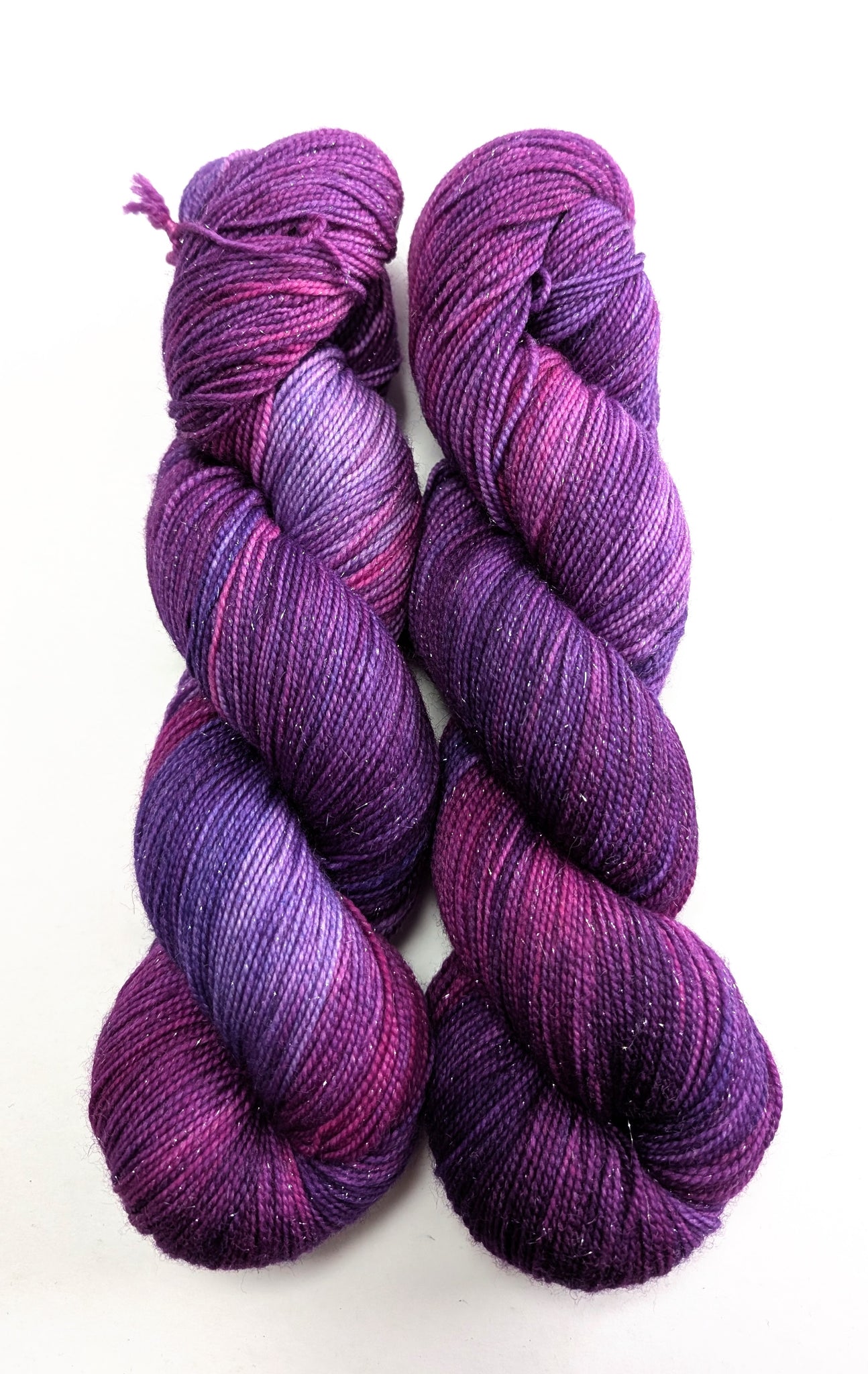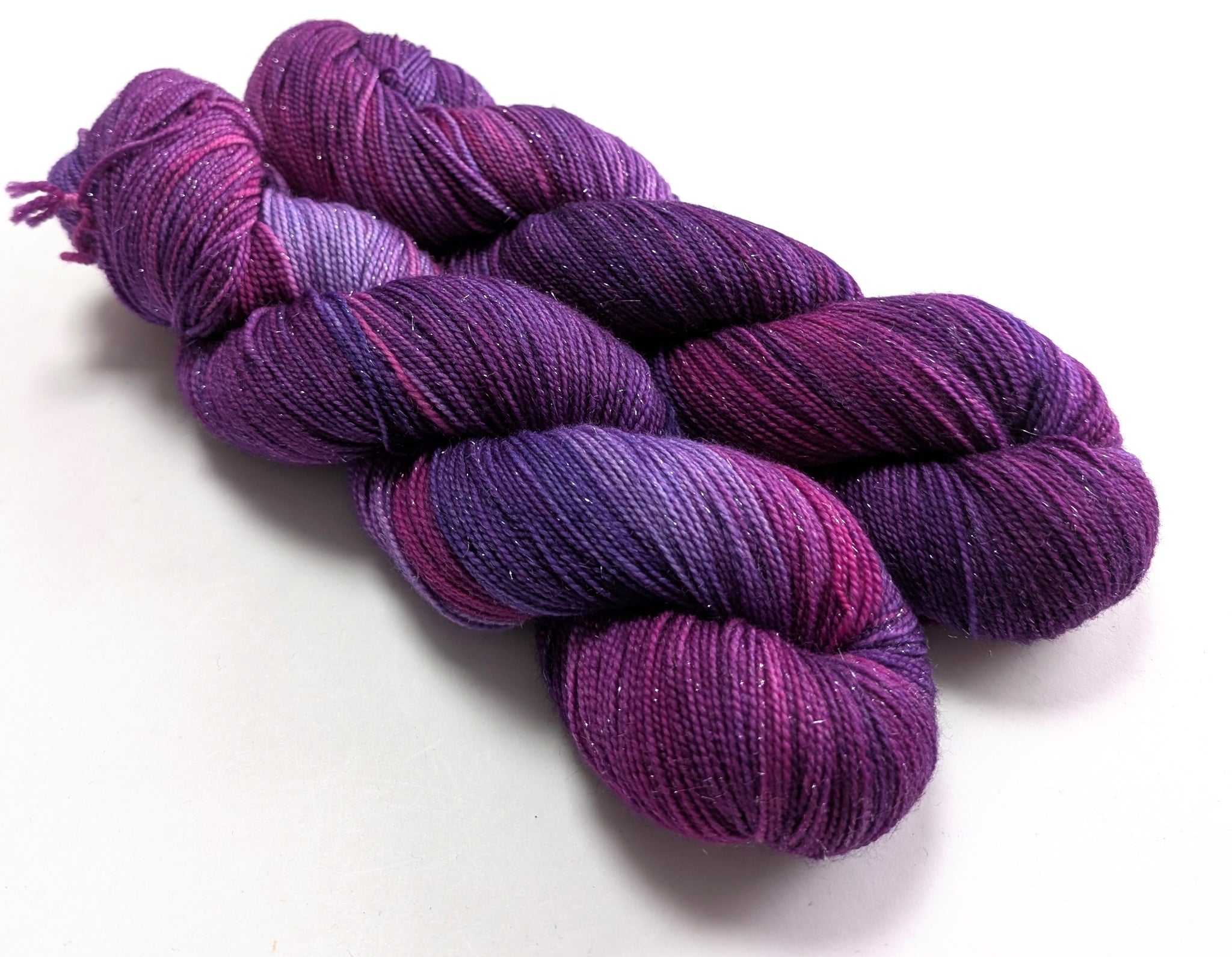 Purple Haze on superwash merino/nylon/sparkle sock yarn.