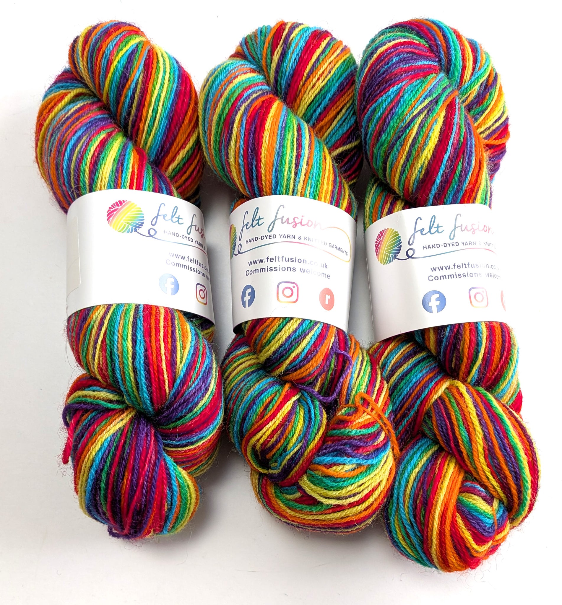 A non superwash British wool blend of 40% Exmoor Blueface/20% Devon Closewool/20% Blue Faced Leicester/20% nylon. This is a sock/4ply/fingering weight yarn.